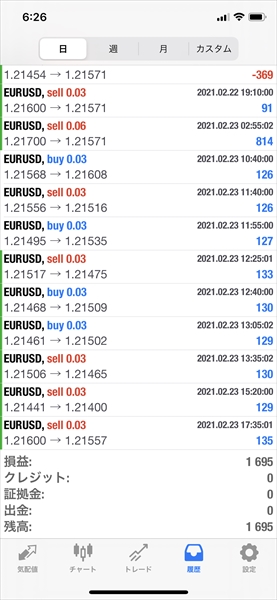 FX自動売買の運用結果(2021年2月23日:デイリー)