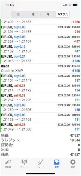 2021年2月22日~2月26日のFX自動売買トレード結果です。通貨ペアはEURUSDです。Lot0.03で運用しています。
