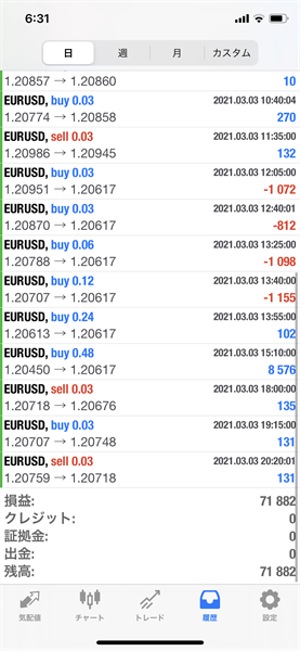FX自動売買の運用結果(2021年3月3日:デイリー)+71,882円【累計+294,206円】