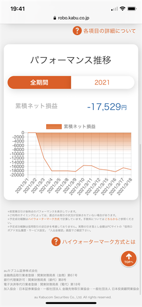 2021年3月18日のauカブコム証券信用ロボアド運用結果です。運用コースは100万円積極型です。