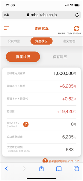 2021年3月24日の信用ロボアド運用結果