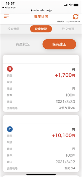 3月22日に約定した2銘柄は、引き続き保有状態です。