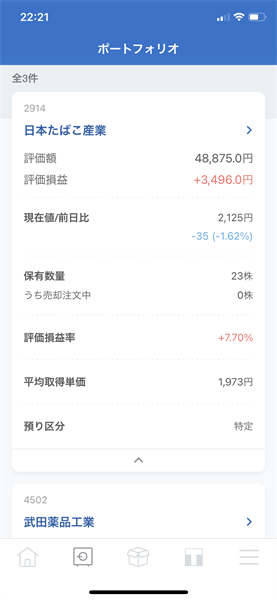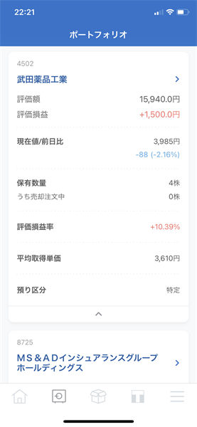 2021年3月の日本個別株の運用結果です。現在保有している銘柄は、[2914]日本たばこ産業・[4502]武田薬品工業・[8725]MS&ADインシュアランスグループHDの3銘柄です。