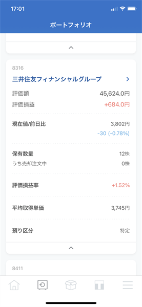 [8316]三井住友フィナンシャルグループ(12株)44,940円