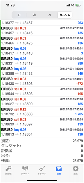 2021年7月5日~7月9日のFX自動売買トレード結果です。通貨ペアはEURUSDです。Lot0.03で運用しています。