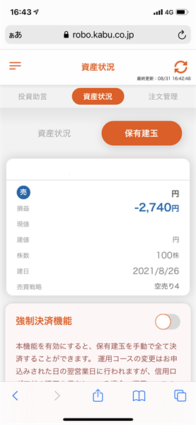 2021年8月16日~8月20日:今週は1銘柄投資助言があったが約定せず