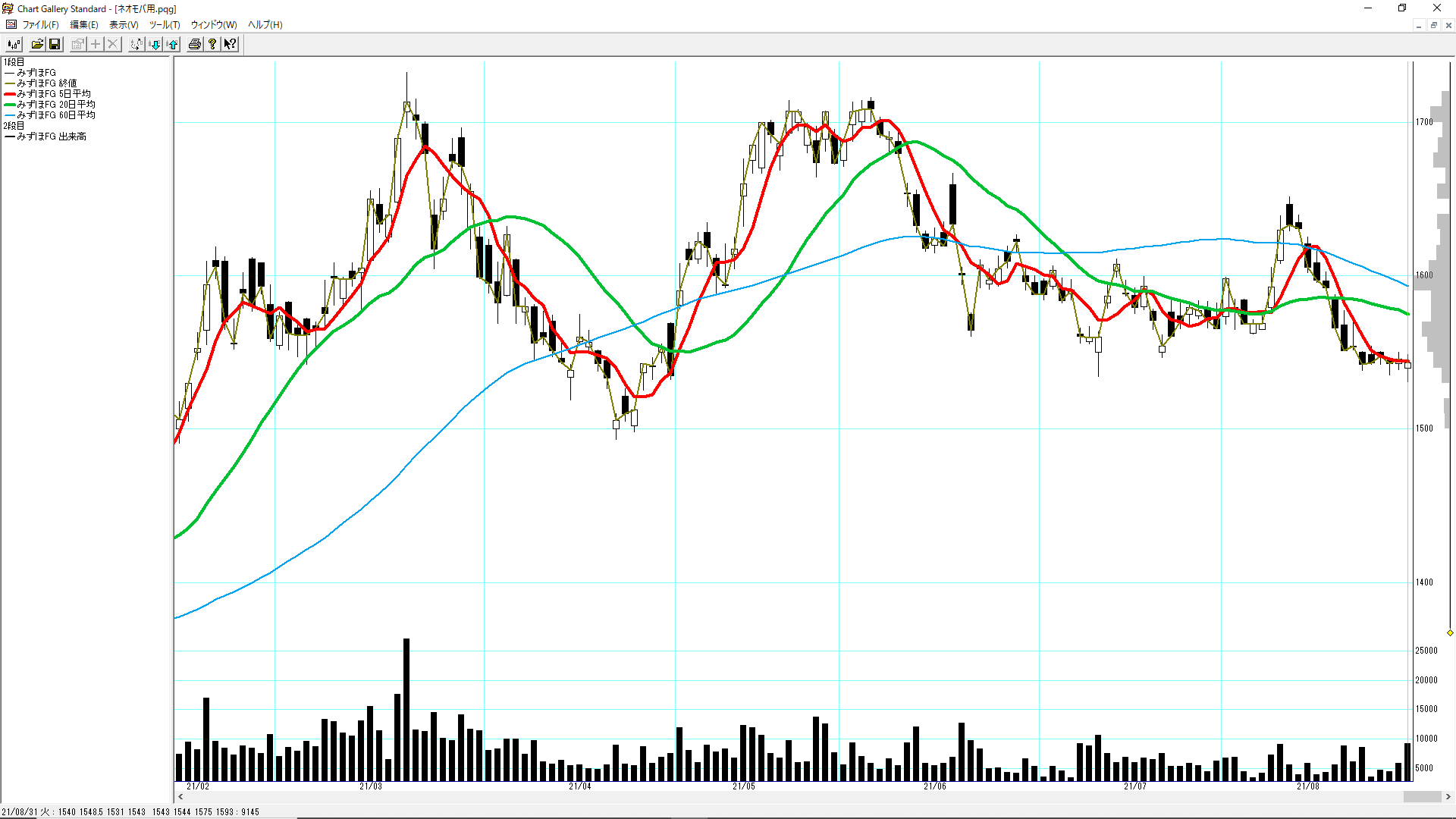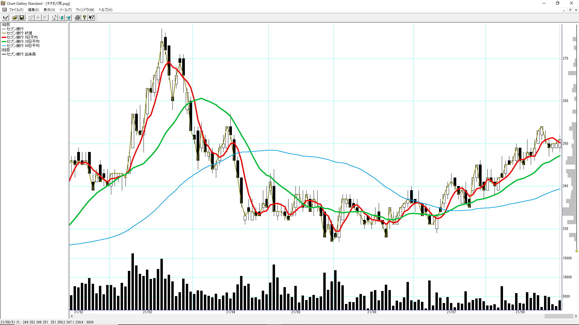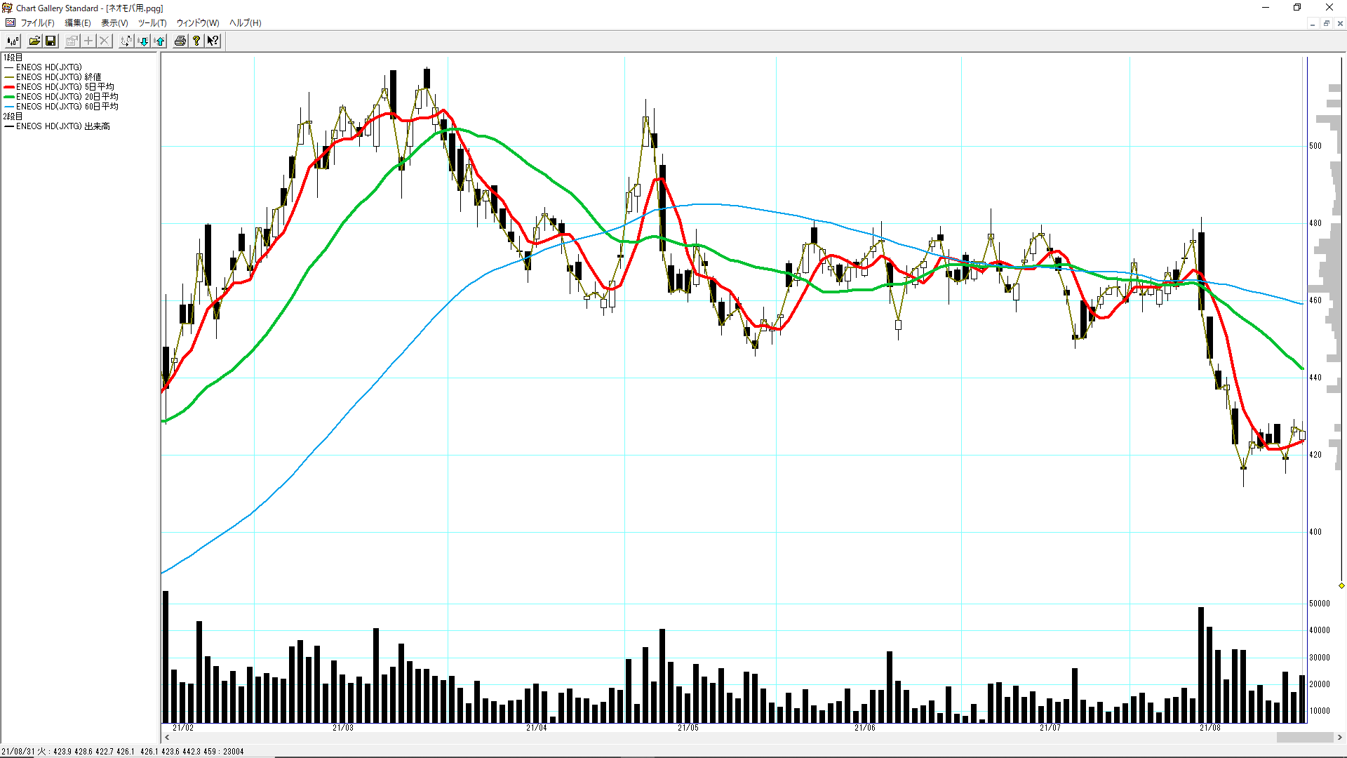 8月の購入は、[5020]ENEOSホールディングスのみでした。他の保有銘柄は損益プラスとなっており、買い増しの対象にはなりませんでした。