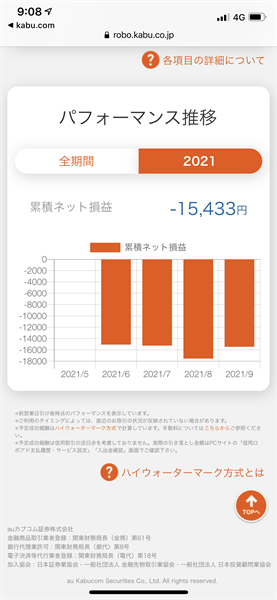 2021年8月30日~9月3日のauカブコム証券の信用ロボアド運用結果です。