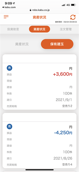 信用ロボアド【auカブコム証券】の運用結果(2021年8月30日~9月3日:ウィークリー)売り2銘柄を保有。日経平均上昇で翌週どうなるか?