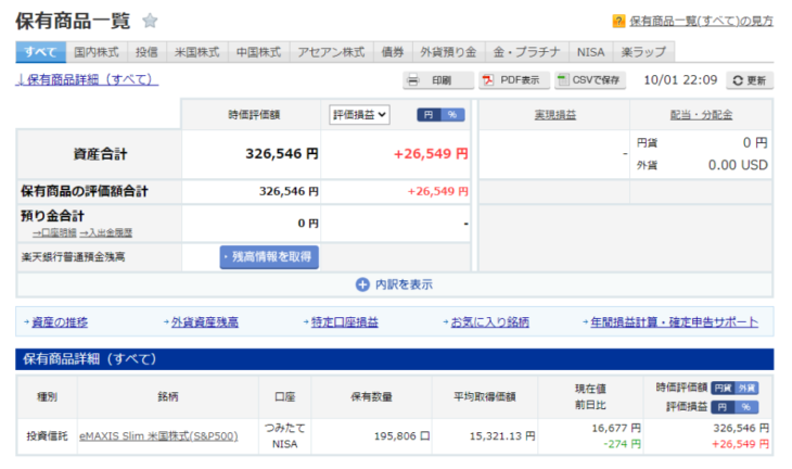 つみたてNISAの運用結果(2021年9月:マンスリー)