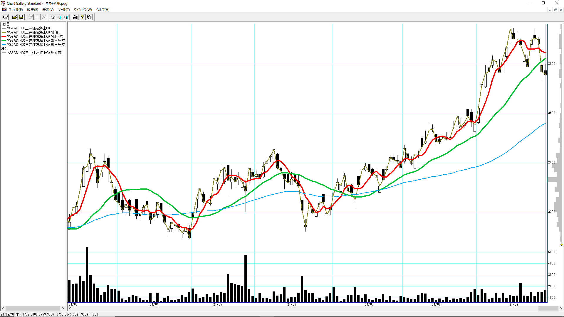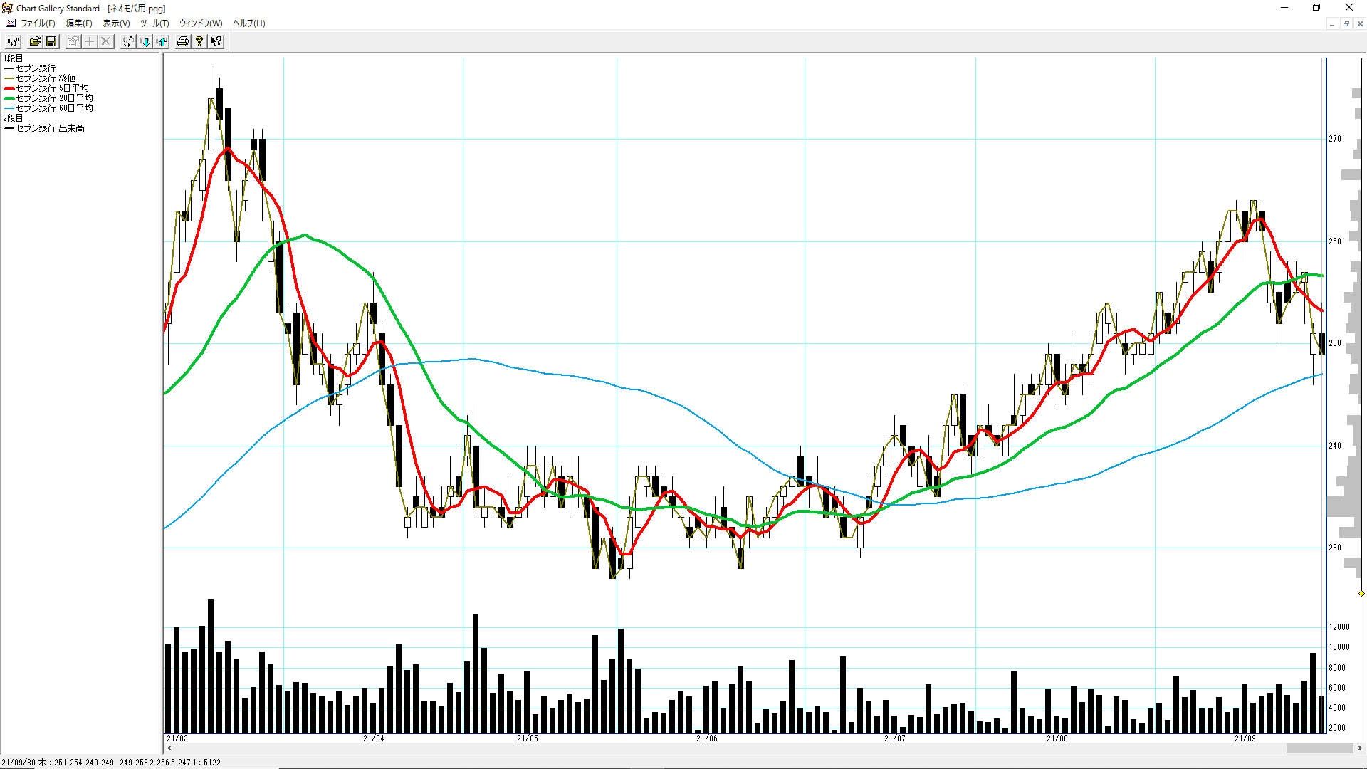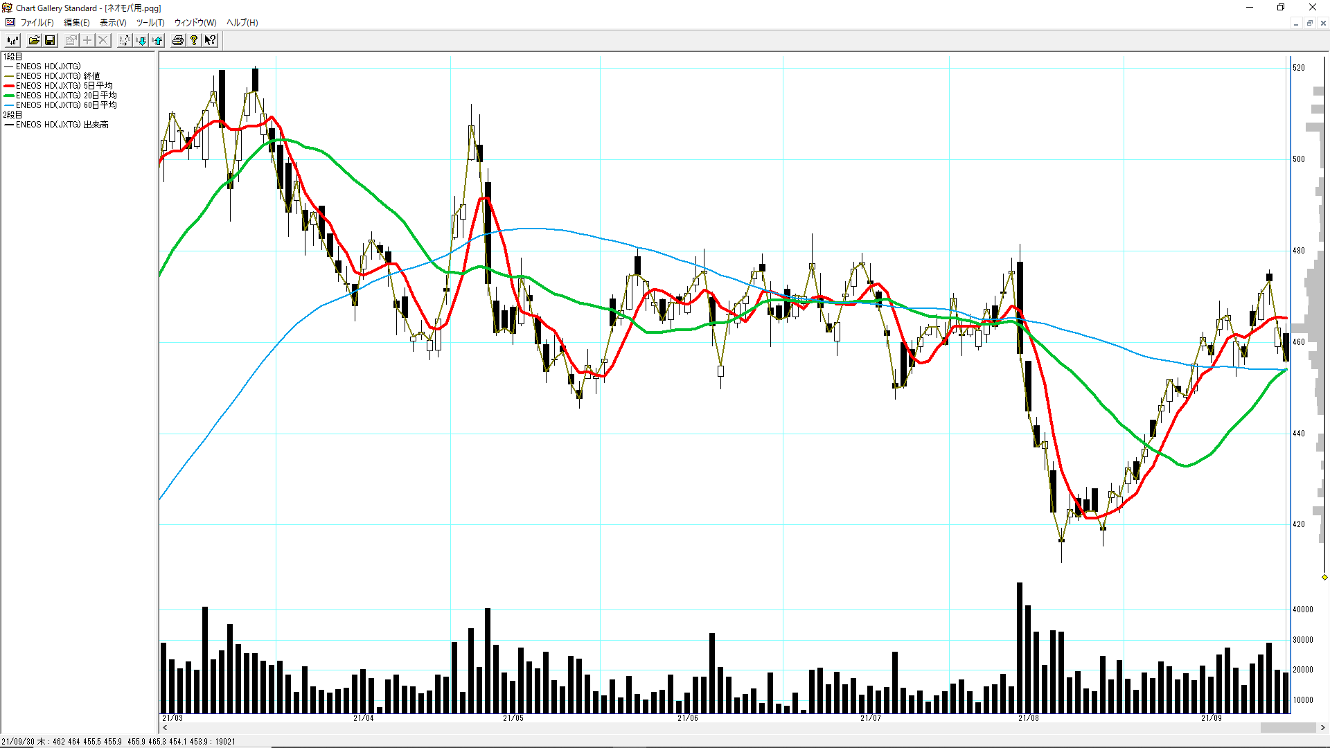 9月に入って保有銘柄はいずれも上昇傾向にあり、購入タイミングがありませんでした。コンスタントに買えていないのは、ちょっと問題かもしれません。[5020]ENEOSホールディングスが9月に入ってから上昇して損益プラスに転じました。