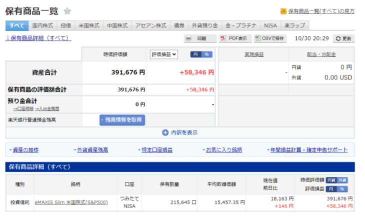 つみたてNISAの運用結果(2021年10月:マンスリー)