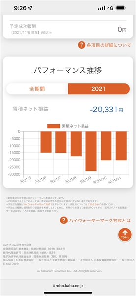 2021年11月1日~11月5日のauカブコム証券の信用ロボアド運用結果です。