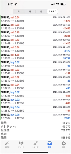 2021年11月のFX自動売買トレード結果です。通貨ペアはEURUSDです。Lot0.02で運用しています。