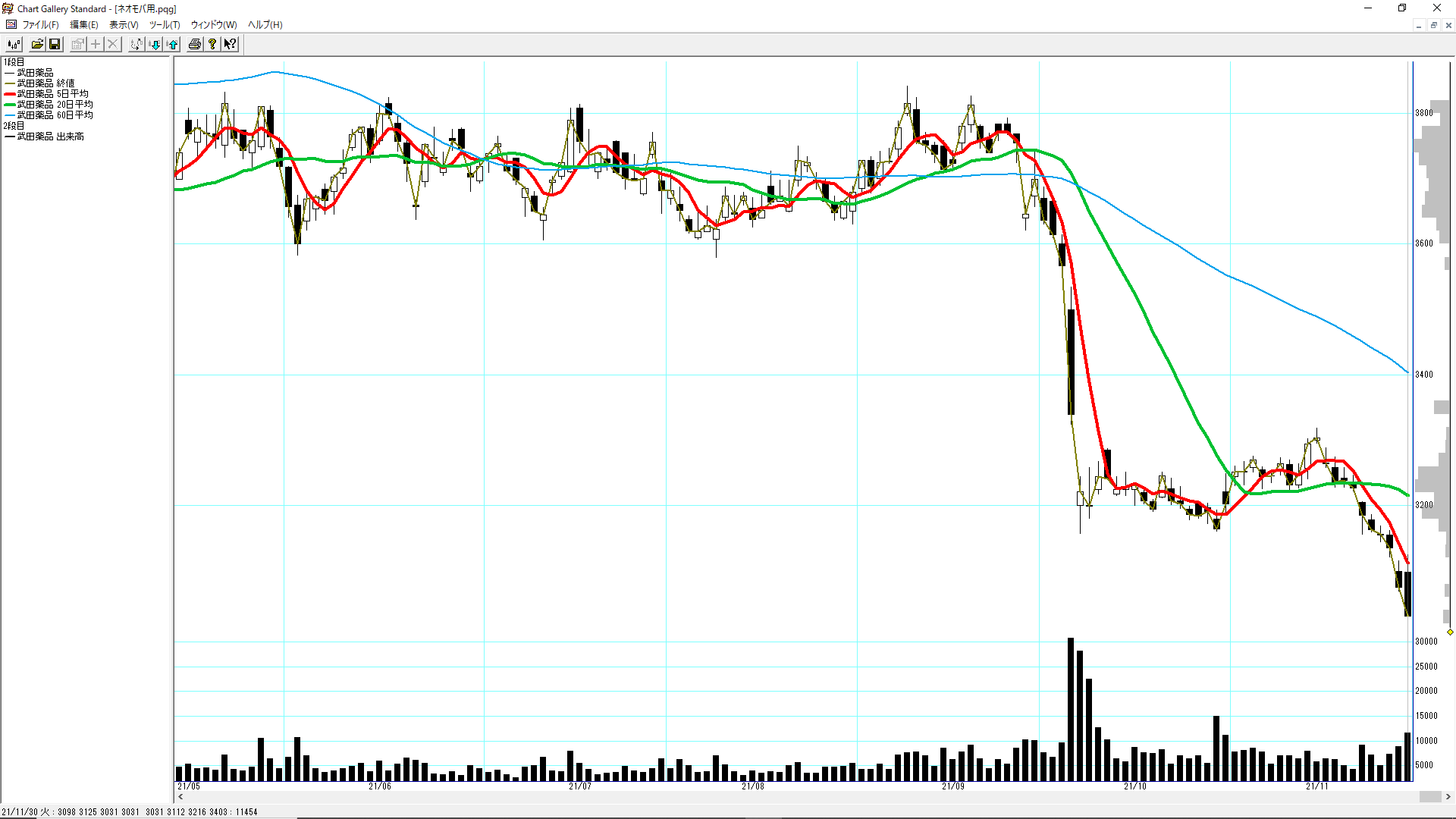 下がっているのでさらに買い増したいところですが、保有している日本株の1/3が[4502]武田薬品工業で、ただでさえポートフォリオのバランスが悪いので、これ以上買い増すのは控えています。
