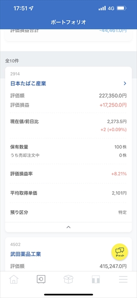 コツコツ買い増して[2914]日本たばこ産業が100株になりました