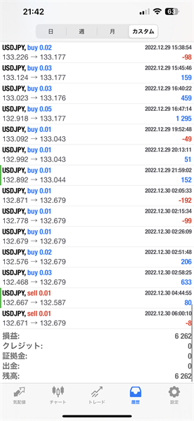 2022年12月26日~12月30日のFX自動売買トレード結果です。通貨ペアはUSDJPYです。Lot0.01で運用しています。