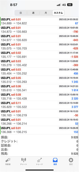 2023年2月20日~2月24日のFX自動売買トレード結果です。通貨ペアはUSDJPYです。Lot0.01で運用しています。