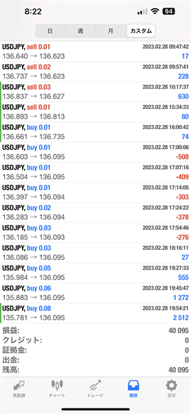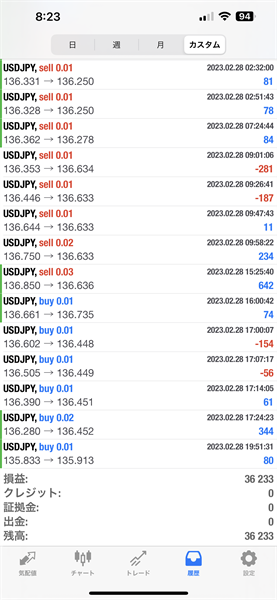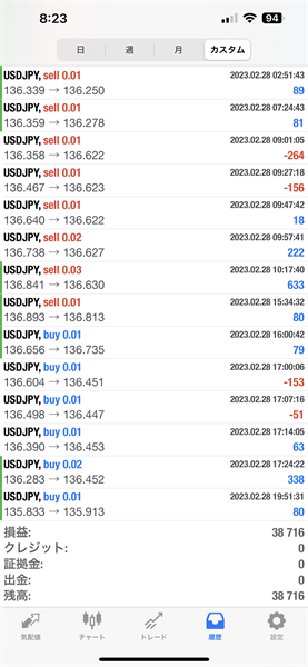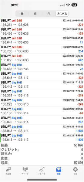 2023年2月のFX自動売買トレード結果です。通貨ペアはUSDJPYです。Lot0.01で運用しています。
