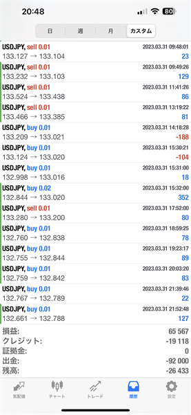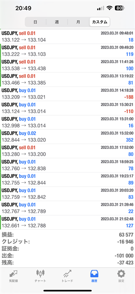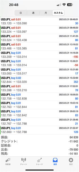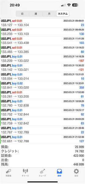 2023年3月のFX自動売買トレード結果です。通貨ペアはUSDJPYです。Lot0.01で運用しています。