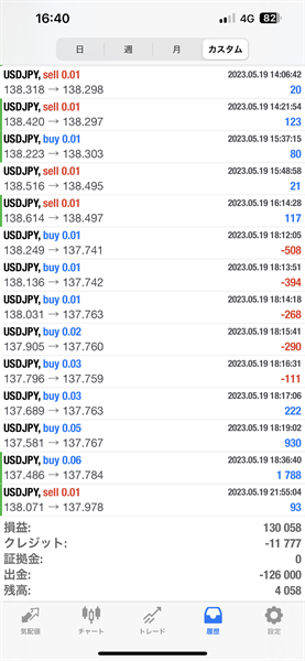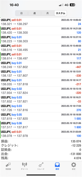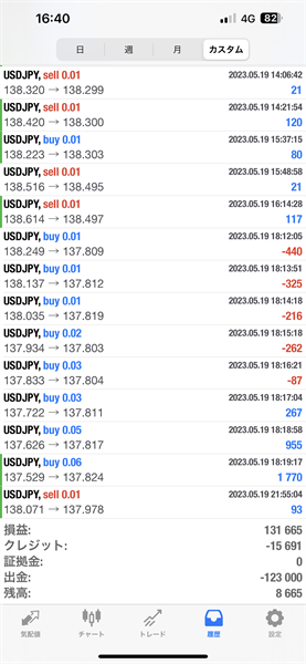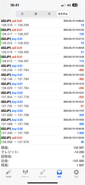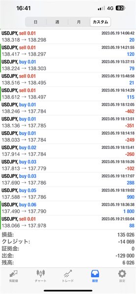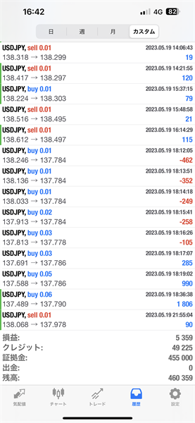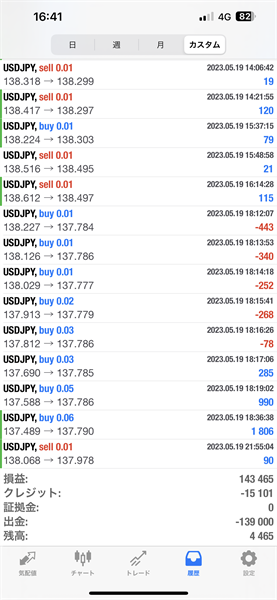 2023年5月15日~5月19日のFX自動売買トレード結果です。通貨ペアはUSDJPYです。