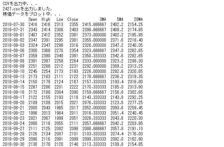 [1]株価データを取得する上記で、株価のデータを取得することが出来るようになりました。