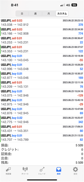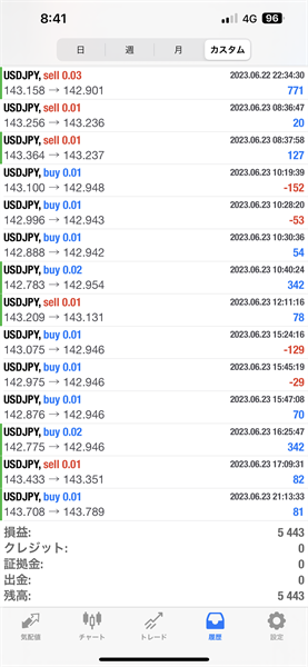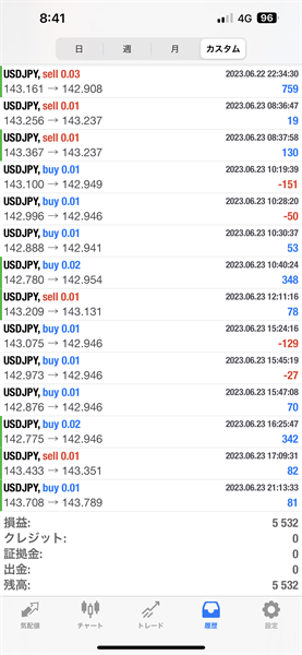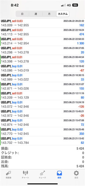 2023年6月19日~6月23日のFX自動売買トレード結果です。通貨ペアはUSDJPYです。