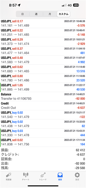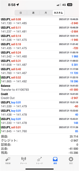 2023年7月17日~7月21日のFX自動売買トレード結果です。通貨ペアはUSDJPYです。
