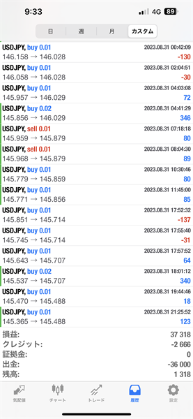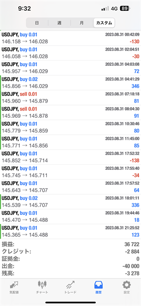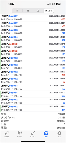 2023年8月のFX自動売買トレード結果です。通貨ペアはUSDJPYです。