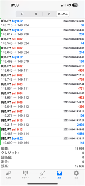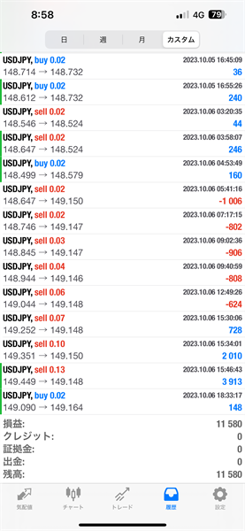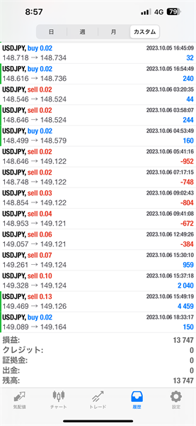 2023年10月2日~10月6日のFX自動売買トレード結果です。通貨ペアはUSDJPYです。
