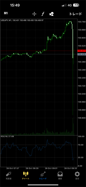 10/26(木)に、大きく動いた際、1日の合計利益が約12万円となり、今週の利益を押し上げました。