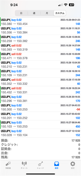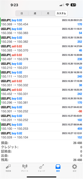 2023年10月23日~10月27日のFX自動売買トレード結果です。通貨ペアはUSDJPYです。