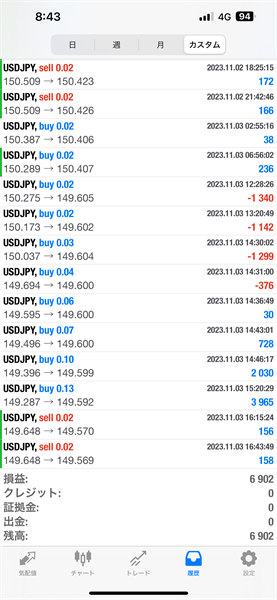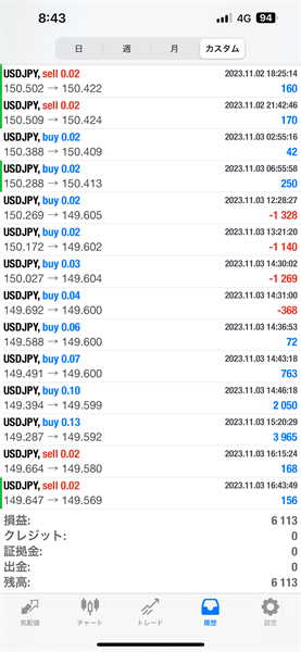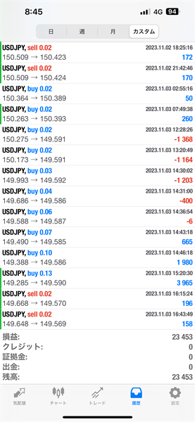 2023年10月30日~11月3日のFX自動売買トレード結果です。通貨ペアはUSDJPYです。