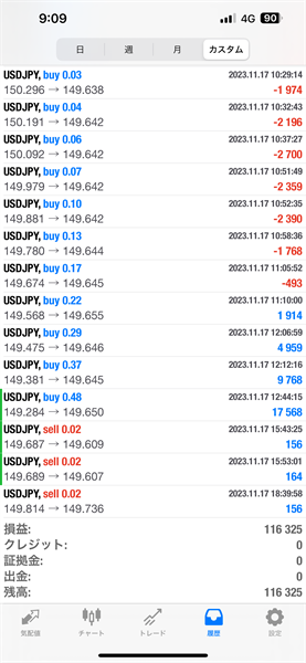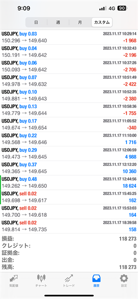 2023年11月13日~11月17日のFX自動売買トレード結果です。通貨ペアはUSDJPYです。