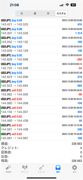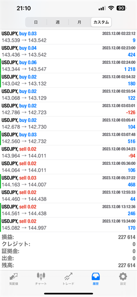 2023年12月4日~12月8日のFX自動売買トレード結果です。通貨ペアはUSDJPYです。