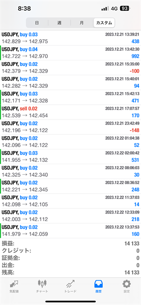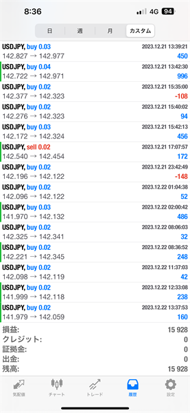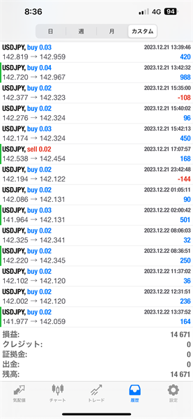2023年12月18日~12月22日のFX自動売買トレード結果です。通貨ペアはUSDJPYです。