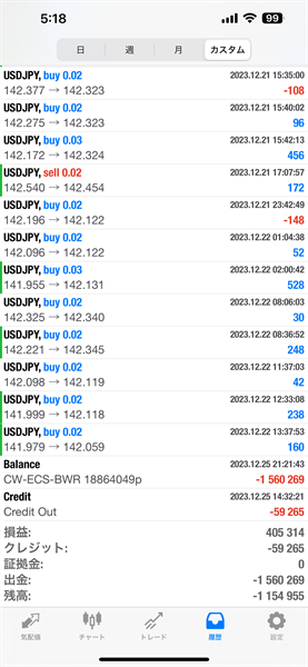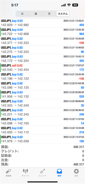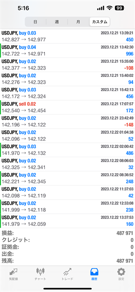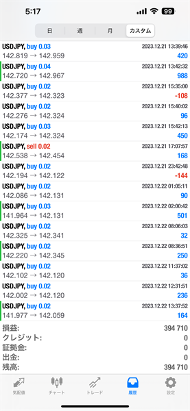 2023年12月のFX自動売買トレード結果です。通貨ペアはUSDJPYです。