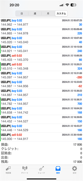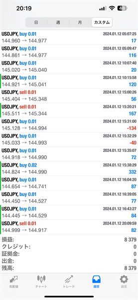 2024年1月8日~1月12日のFX自動売買トレード結果です。