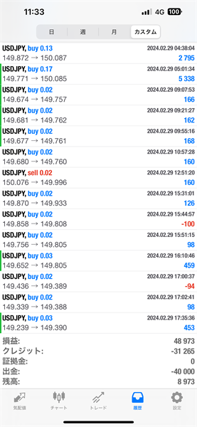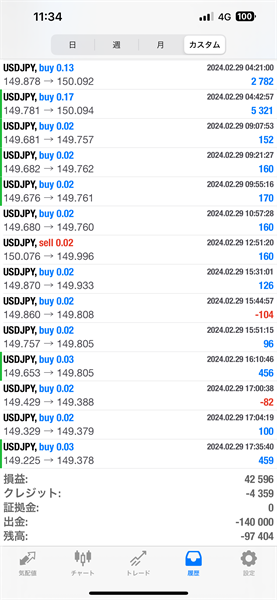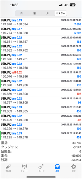 2024年2月のFX自動売買トレード結果です。通貨ペアはUSDJPYです。