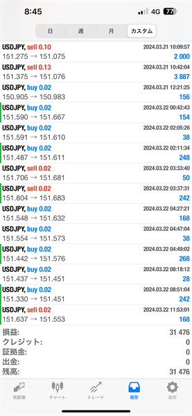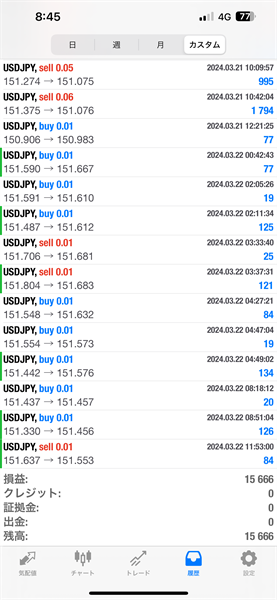 2024年3月18日~3月22日のFX自動売買トレード結果です。通貨ペアはUSDJPYです。