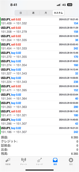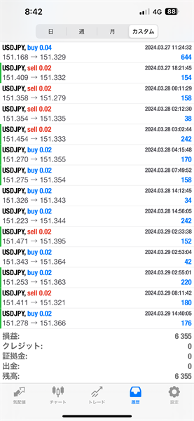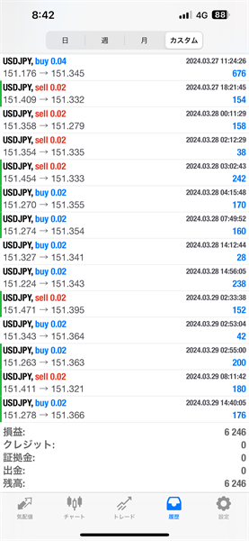 2024年3月25日~3月29日のFX自動売買トレード結果です。通貨ペアはUSDJPYです。