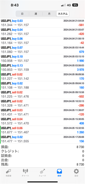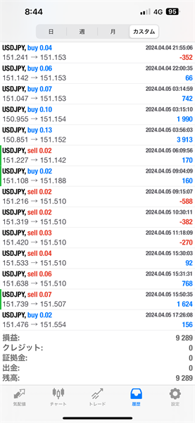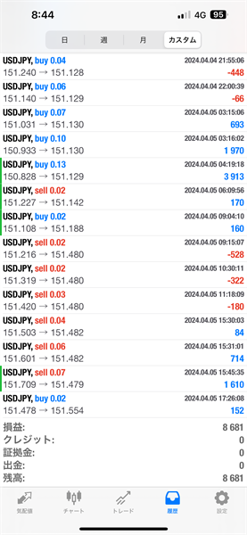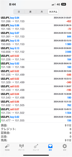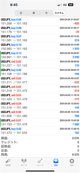 2024年4月1日~4月5日のFX自動売買トレード結果です。通貨ペアはUSDJPYです。