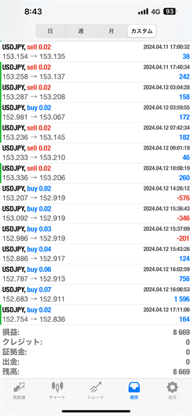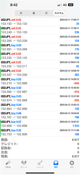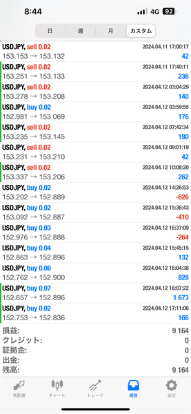 2024年4月8日~4月12日のFX自動売買トレード結果です。通貨ペアはUSDJPYです。