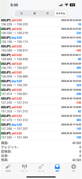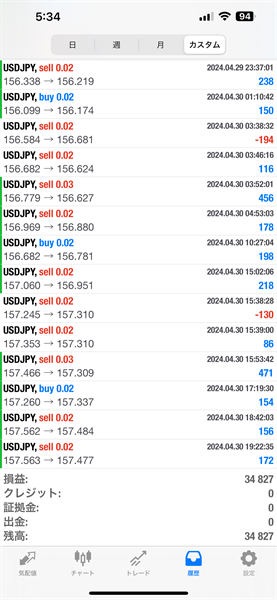 2024年4月のFX自動売買トレード結果です。通貨ペアはUSDJPYです。