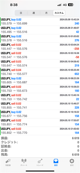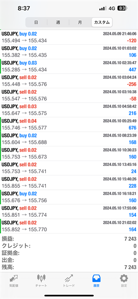 2024年5月6日~5月10日のFX自動売買トレード結果です。通貨ペアはUSDJPYです。