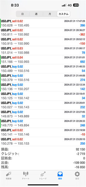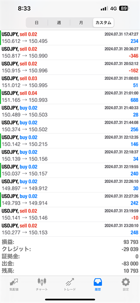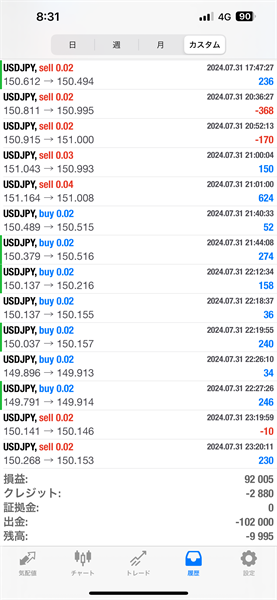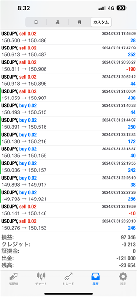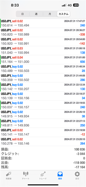 2024年7月のFX自動売買トレード結果です。通貨ペアはUSDJPYです。
