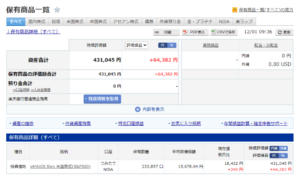 旧つみたてNISAは楽天証券で運用しています。2021年1月~2023年12月まで積み立てて、以降は売却せずにそのまま運用を続けています。投資元本:1,199,988円