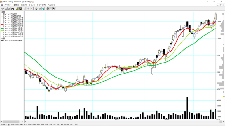 5日線と20日線が右肩上がりで半分の法則が発生した場合、一時的に陰線が出ても、その後、陽線で上昇していくケースが多いので、今回のような方法を考えてみました。