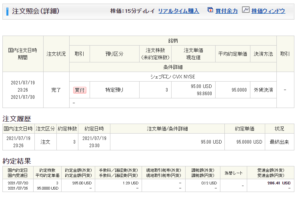 シェブロン[CVX]を9株購入 2021年7月19日にシェブロン[CVX]を9株、SBI証券で購入しました。同じ日に3回…